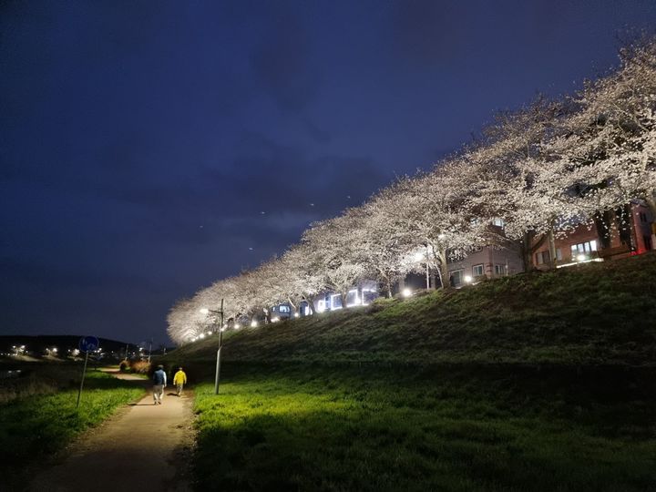 이에 군은 사업비 3억 2500만원을 투입해 벚꽃길을 따라 LED 투광등 334개를 설치했다. 매일 일몰부터 새벽 2시까지 야간조명을 점등·운영해 야간 볼거리를 제공한다.