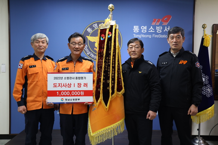 [통영=뉴시스] 신정철 기자 = 통영소방서가 2022년도 수행 경남도내 소방관서 종합평가에서 18개 관서 중 3위로 ‘장려상’을 수상했다고 28일 밝혔다.