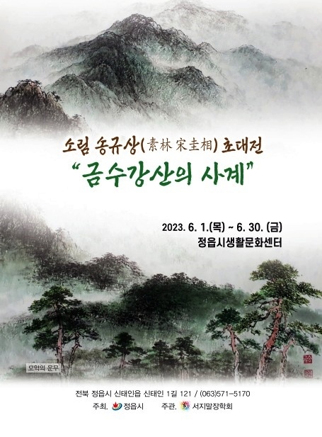 정읍시는 신태인읍에 위차한 생활문화센터에서 오는 6월1일~30일, 소림 송규상 작가의 '금수강산의 사계' 초대전을 연다고 30일 밝혔다.