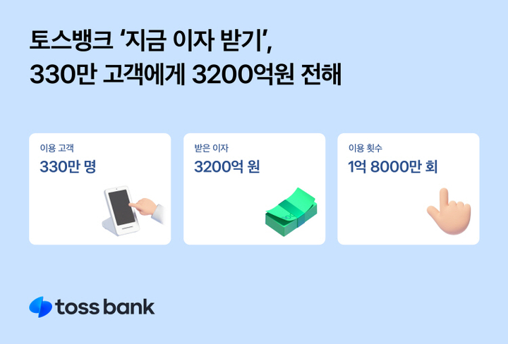 토스뱅크, 지금 이자 받기 330만명 지급…1인당 9만7000원