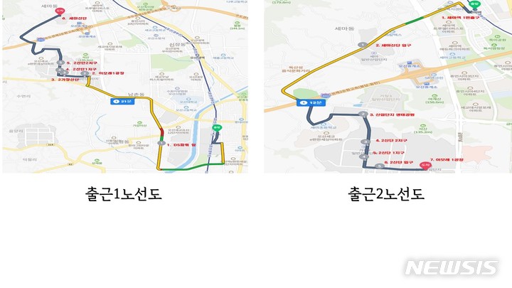오산역에서 출발하는 출근 1노선은 1회 오전 7시50분에 운행해 오전 8시25분 세마산단에 도착한다.
