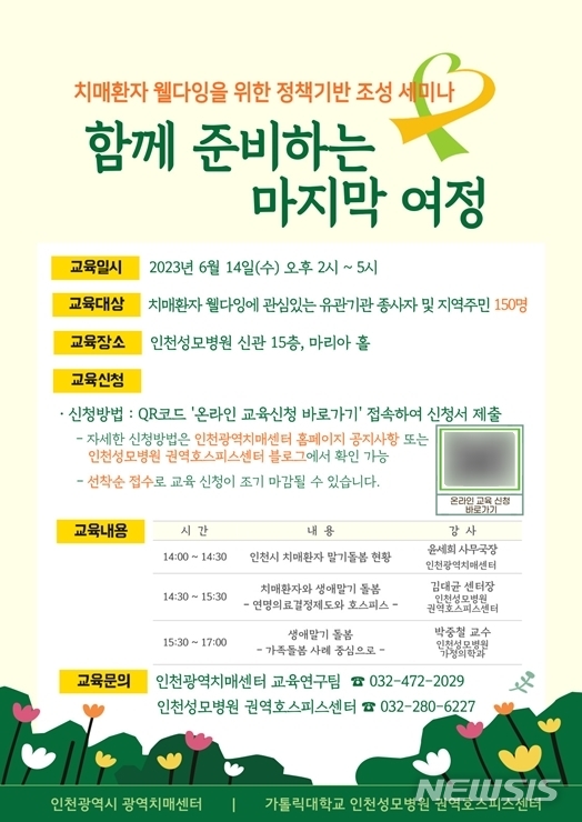 '함께 준비하는 마지막 여정'을 주제로 열리는 이번 세미나는 인천광역치매센터와 인천성모병원 권역호스피스센터가 공동 주관한다.