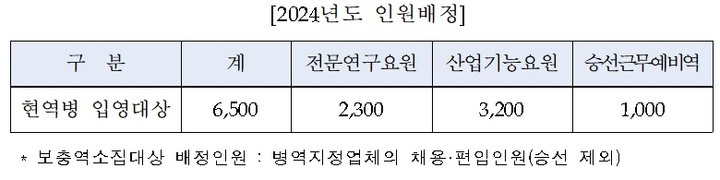 병무청, 2024년도 병역지정업체 인원 6500명 배정
