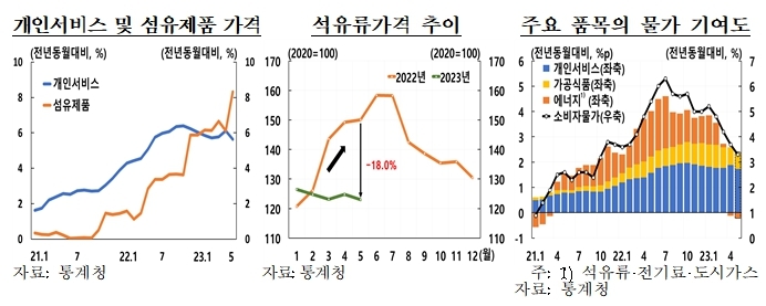 소비자물가 상승률은 최근 3개월간 전년동월대비 3월 4.2%, 4월 3.7%, 5월 3.3% 등의 흐름을 보였다.