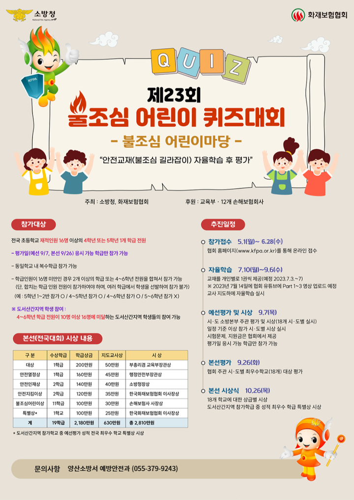 소방청과 한국화재보험협회가 주최하고 교육부, 12개 손해보험회사 후원하는 행사다. 화재 등 생활안전에 대한 기초지식 학습과 평가를 통해 어린이들의 안전생활 습관화 및 조기 안전문화 정착에 이바지하고자 매년 시행한다.