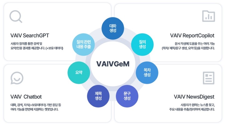 이외에도 바이브GeM을 기반으로 시장의 수요에 맞는 ▲AI가 데이터의 수집, 분석부터 리포트까지 작성해주는 '바이브 리포트 코파일럿' ▲AI 대화 솔루션 '바이브 챗봇' ▲사용자가 원하는 뉴스를 선별해 요약해주는 '바이브 뉴스다이제스트' 등 다양한 솔루션과도 결합해 제공할 계획이다.