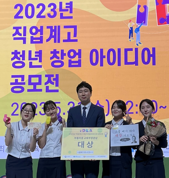 [광주=뉴시스] 류형근 기자 = 광주시교육청은 광주여자상업고등학교 강진서·박윤정·오윤정·조은별 학생이 '2023년 직업계고 청년 창업 아이디어 공모전'에서 대상인 사회부총리 겸 교육부장관상과 상금 700만원을 받았다고 6일 밝혔다.