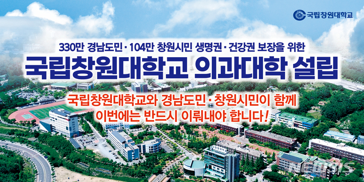 [창원=뉴시스] 홍정명 기자 = 국립 창원대학교는 '창원대학교 의과대학 설립 추진을 위한 궐기대회'를 오는 9일 오후 1시45분 글로벌평생학습관(98호관) 1층 CWNU가온홀에서 개최한다고 8일 밝혔다.