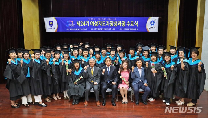 [안양·시흥=뉴시스] 박석희 기자 = 경기 안양대학교 경영행정대학원은 최근 박노준 총장과 한경일 경영행정대학원장, 민계식 안양시청 여성가족과장 등이 참석한 가운데 ‘제24기 여성 지도자 양성 과정 수료식’을 했다고 8일 전했다.