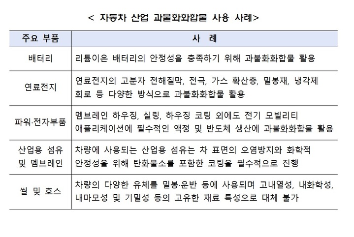 산업부는 오는 2025년 사용제한 여부가 결정될 것이라는 전망에 따라 반도체와 배터리, 자동차 등 과불화화합물을 많이 사용하는 업계의 대응 현황을 파악하고 건의사항을 청취할 방침이다.