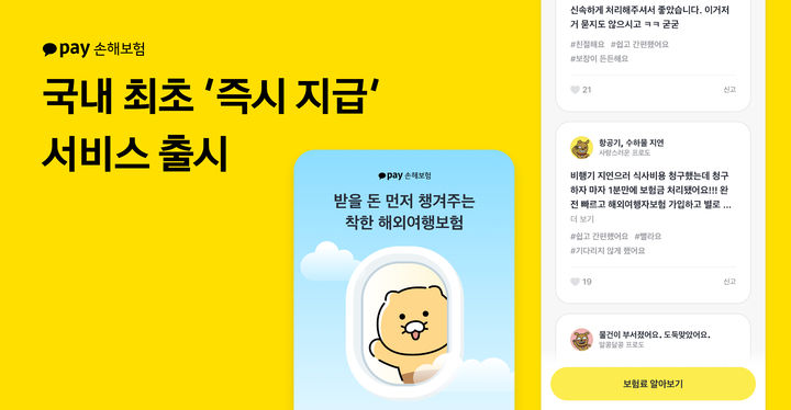 [서울=뉴시스] 남정현 기자 = 카카오페이손해보험이 해외여행보험 가입자가 보험금을 신청하면 1분 안에 지급하는 서비스를 시작한다고 27일 밝혔다.