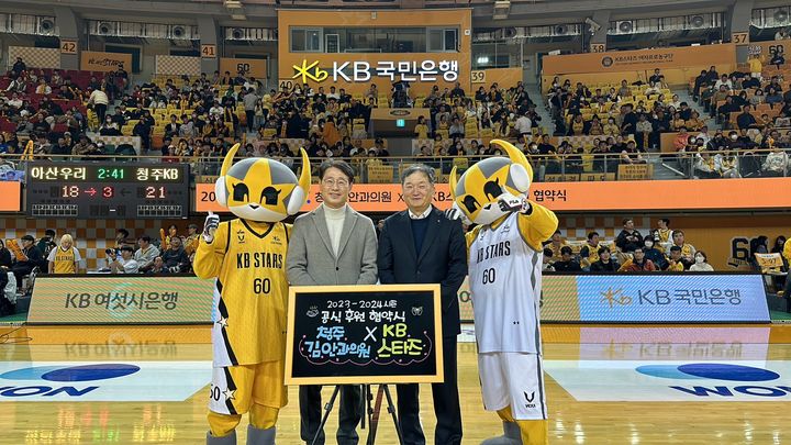 [청주=뉴시스] 조성현 기자 = 충북 청주 김안과는 청주KBS스타즈와 2023-2024시즌 공식후원사 협약식을 맺었다고 28일 밝혔다.