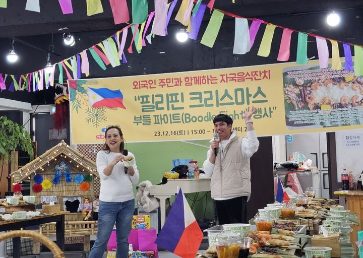 이날 행사에 참석한 필리핀 이주민 100여 명은 부들 파이트로 비혼(잡채 요리), 파인애플볶음밥 등 자국 음식을 즐기며 서로 노고를 위로하고 덕담을 주고받았다.