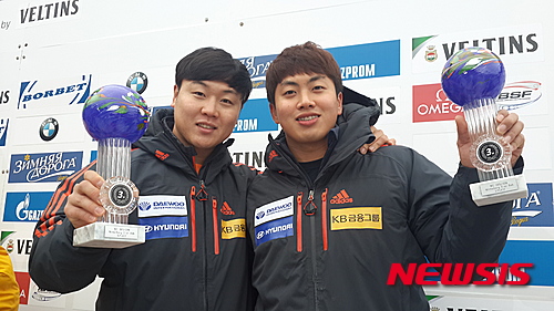 원윤종과 서영우는 올 시즌 월드컵에서 금메달 1개, 동메달 3개를 수확, 남자 봅슬레이 2인승 랭킹 1위에 이름을 올렸다.