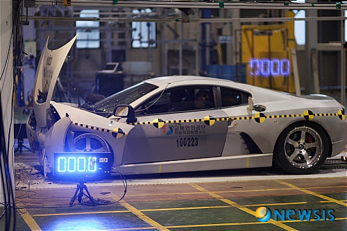【서울=뉴시스】김훈기 기자 = 국산 수제스포츠카인 스피라가 정면충돌 테스트를 통과해 2차 테스트만을 남겨놓게 됐다.