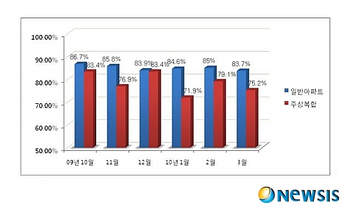 【서울=뉴시스】김형섭 기자 = 최근 부동산 시장 침체로 아파트 경매시장의 낙찰가가 하락세를 보이는 가운데 주상복합이 일반아파트보다 더 큰 하락세를 보이고 있는 것으로 나타났다.