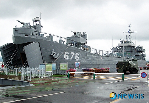 【군산=뉴시스】고석중 기자 = 전북 군산시 내항에 위치한 진포해양테마공원 내 퇴역 해군함정 위봉함이 가족단위 체험장으로 인기를 독차지할 것으로 기대된다.