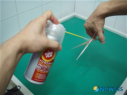 이 와중에 애견 미용사들 사이에 각광 받고 있는 방청 윤활제가 ‘양털유’다. 이 ‘플루이드 필름’ 방청제는 양모에서 추출한 성분으로 만든 친환경 기름이다. 석유에서 뽑아낸 물질이 주성분인 여느 방청 윤활제와 달리 휘발성 유기화합물(VOCs)이 0.001%이며, 유해 성분도 없는 무독성이다. 개에게 닿아도 알레르기를 일으키지 않는다.