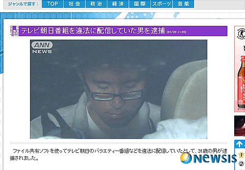 용의자 다나카씨는 지난 2월 중순부터 7월까지 후지텔레비전의 인기 예능 프로그램 '웃어도 좋아(笑っていいとも)'와 니혼텔레비전의 '천재!시무라동물원(天才!志村どうぶつ園)' 등 TV프로그램 165편을 불법으로 인터넷에 전송해오다가 적발됐다.