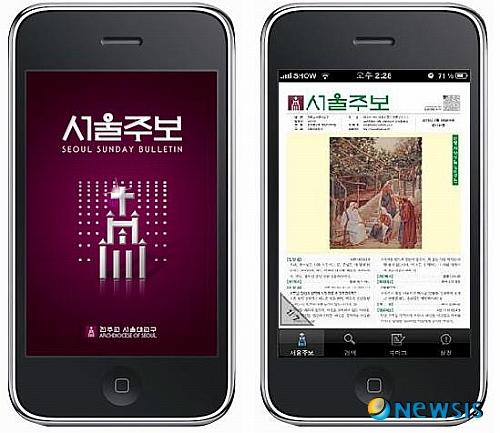 【서울=뉴시스】이현주 기자 = 천주교 서울대교구가 ‘서울주보’의 스마트폰용 애플리케이션을 개발했다. 아이폰과 아이팟 사용자는 앱스토어를 통해 무료로 내려 받아 사용할 수 있다.