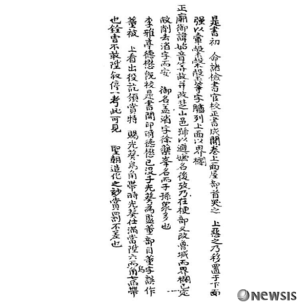 안 교수는 “정조가 1792년 3월 이덕무에게 편찬을 명령한 규장전운이 거의 완성돼 인쇄에 들어갈 때 수록된 ‘성(氵+省)’이라는 글자를 빼버리고 그 자리에다 자기 이름인 ‘산(示+示)’이라는 글자를 집어넣었다”며 “‘산(示+示)’이라는 글자는 이후 발음이 ‘성(셩)’으로 바뀌게 됐다”고 설명했다.