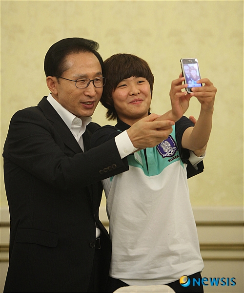 <사진> 왼쪽 상단부터 차례로 박정희 전두환 노태우 김영삼 김대중 노무현 전 대통령과 이명박 대통령. 아래는 안경을 쓴 이명박 대통령과 지소연 선수