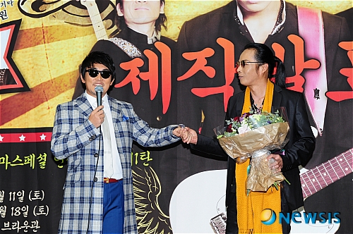 꽃다발을 선물받은 김태원은 “80년대 외진, 후미진 곳에서 둘이 만날 때 이런 상황에서 만나게 될줄은 정말 몰랐다”면서 “우리는 사실 무언가 이뤄놓고 인생을 산 적이 없이 계속 이뤄가고 있다. 언젠가 만나게 될 줄 알았다. 그동안의 갭이 있을 수 있지만 오늘 만남이 의미가 크다”고 화답했다.
