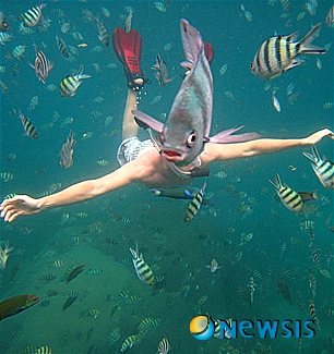 사진의 주인공은 미국인 배낭여행가인 닉 켈리. 동남아시아를 여행 중인 켈리는 태국 코타오 섬 인근 열대 해안에서 스노클링을 하던 중 이 같은 사진의 주인공이 됐다.