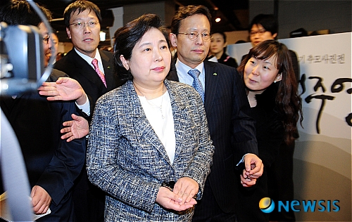 【서울=뉴시스】이민정 정병준 기자 = 현정은 현대그룹이 회장이 또 한번 정몽구 현대차그룹 회장과 한 자리에 섰다.