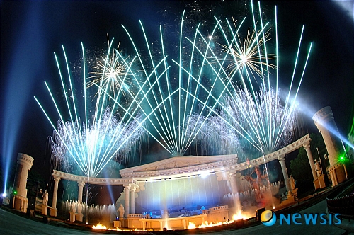 대형 멀티미디어 불꽃 쇼는 개장 35주년 축제 행사의 하이라이트로, 평상시 불꽃놀이에 사용되는 5000발보다 세 배 이상 많은 1만5000발의 불꽃이 동원돼 화려함을 더한다.