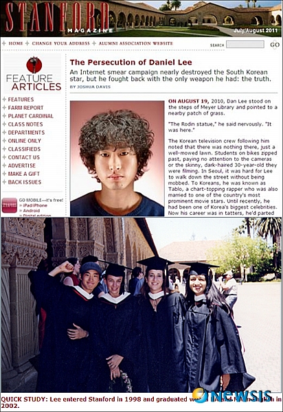스탠퍼드 매거진 7·8월호는 '대니얼 리의 박해'(The Persecution of Daniel Lee)라는 제목의 기사를 통해 졸업생인 타블로의 학력 논란을 다뤘다. 대니얼 리는 타블로의 영어 이름이다.