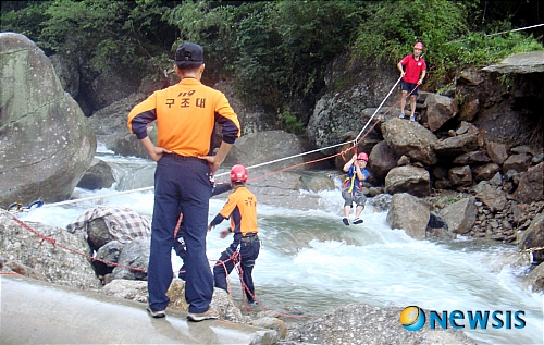 지난달 14일에도 산동면 당동마을 계곡에서 마모(52)씨 가족 3명이 불어난 계곡물 때문에 하산하지 못하고 119에 구조를 요청했다.