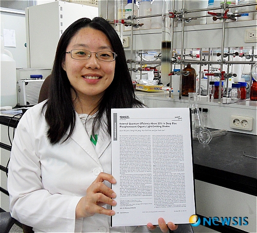 【용인=뉴시스】윤상연 기자 = 단국대학교 전순옥씨(28·고분자화학전공)가 3년6개월 박사과정 기간 동안 차세대 디스플레이로 각광받고 있는 OLED(유기발광다이오드)와 유기태양전지 분야의 SCI(과학기술논문인용색인) 저널에 60편의 논문을 게재해 화제가 되고 있다.