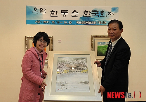 지난 14일부터 20일까지 목포문화예술회관에서 '두번째 이야기' 전시회를 가진 한 경위는 이 자리에서 이랜드복지관 등 2곳에 한국화 4점을 전달했다.