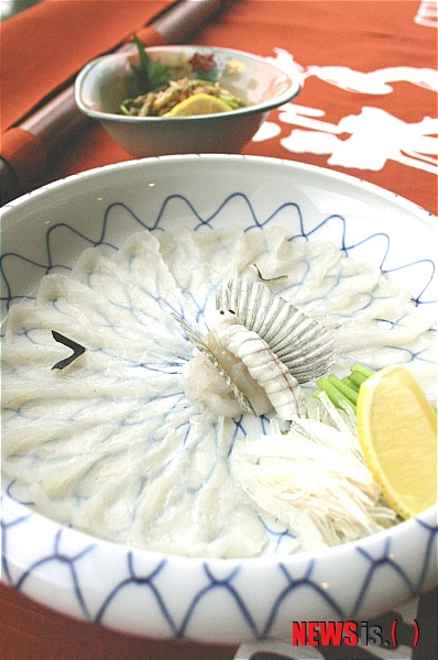 초회, 회, 지리, 튀김 등을 맛볼 수 있는 '복 정식'(20만원), 쫀득쫀득한 복 껍질을 초무침한 '복가'를 비롯해 '복회', '복탕', '복지리', '복튀김', '복죽'(3만~8만원)등 일품요리가 마련된다. 특히 복회(20만원,이상 세금·봉사료 별도)는 얇게 저민 접시에 꽃처럼 아름답게 담겨져 나와 눈을 즐겁게 해줄 뿐 아니라 직원이 회와 함께 복껍질과 야채를 돌돌 말아 직접 서브해준다. 02-2186-6888