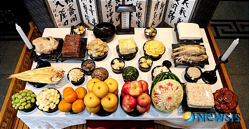 다섯번째 줄은 조율이시(棗栗梨枾)를 따라 왼쪽부터 대추, 밤, 배, 감의 순으로 과일을 올려놓는다. 이 때 붉은 과일은 동쪽, 흰 과일은 서쪽으로 올린다.