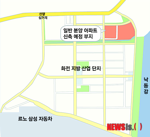 화전산업단지 내 지원시설 용지인 이 곳은 부산시가 이전엔 산단 개발계획에 일반 분양아파트가 명시돼 있지 않았다는 이유로 아파트사업 승인을 보류했었다.
