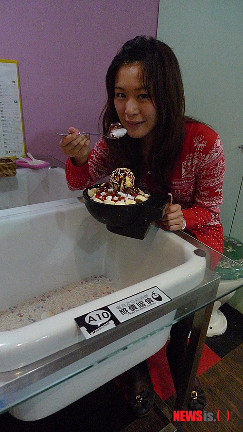 황당해하자 타이완 여성손님 한 명이 "이제 변기 안 빙수가 녹게 되면 더욱 놀랄 것"이라며 눈을 반짝인다.
