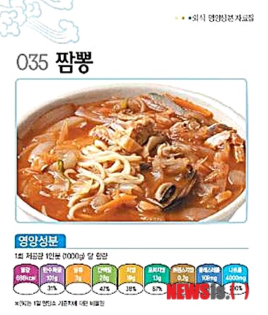 짬뽕에 함유된 나트륨 함량은 된장찌개(2021㎎)와 김치찌개(1962㎎) 보다 두 배 가량 차이를 보였다.