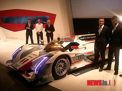 【뮌헨(독일)=뉴시스】최현 기자 = 아우디가 세계적으로 유명한 내구 레이스인 르망24시에 내놓을 차량 R18을 세계 최초로 공개했다.