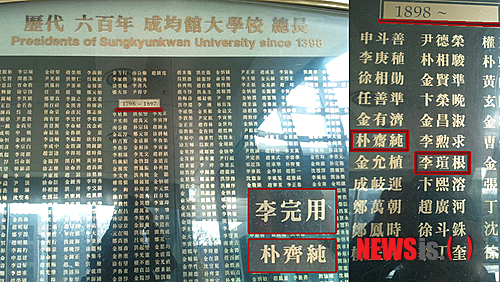 성균관대생 박모씨는 서울 종로구 명륜캠퍼스 600주년 기념관 현관에 걸린 '역대 600년 성균관대학교 총장' 동판에서 을사오적 이완용과 박제순의 이름을 찾아 가리키며 씁쓸하게 말했다.