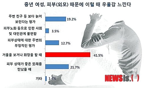 【서울=뉴시스헬스/뉴시스】 중년여성 10명 중 8명은 피부 상태 때문에 스트레스나 우울감을 느끼고 있는 것으로 드러났다.