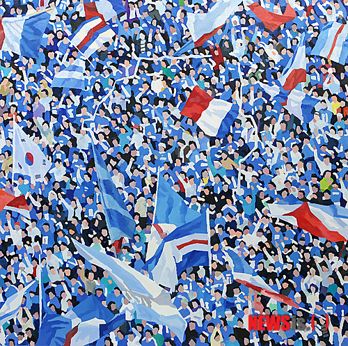 갤러리 측은 “작가는 이번 전시에서 휴양지의 공간을 그려내는 풍경에서 벗어나 더 익명에 의한 공간과 시간, 움직임을 통해 인간이 가지고 있는 몰개성적이고 집단적인 모습들을 보여준다. 그리고 이를 색, 움직임, 공간에 대한 해석으로 풀어냈다”고 설명했다. 전시는 27일까지다. 02-720-5789