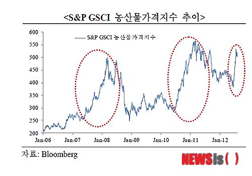 15일 국제금융센터에 따르면 스탠더드앤푸어스(S&P) 농산물가격지수는 6월 중순 이후 미국 등 북반구의 가뭄이 심화되면서 6월15일부터 8월10일까지 두 달간 34% 급등했다.