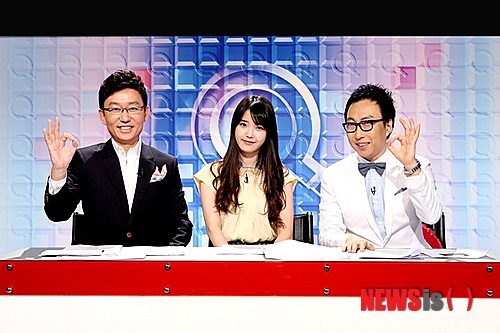 【서울=뉴시스】이예슬 기자 = MBC TV가 신개념 퀴즈 프로그램 '최강연승 퀴즈쇼Q'를 새롭게 선보인다. MC 손범수(48)와 박명수(42), 가수 아이유(19)가 진행한다.