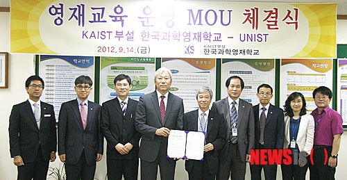 【울산=뉴시스】고은희 기자 = UNIST(울산과기대·총장 조무제)는 지난 14일 KAIST 부설 한국과학영재학교(KSA·교장 권장혁)와 과학영재 조기발굴과 육성을 위해 교육과정 운영에 관한 협약을 체결했다고 16일 밝혔다.