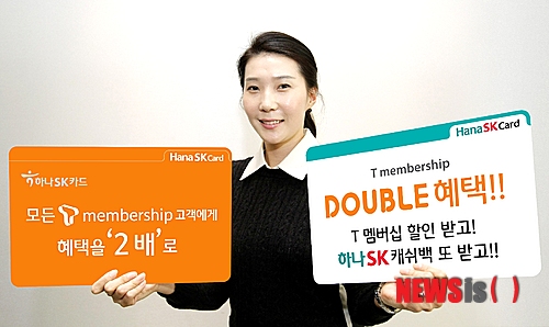 【서울=뉴시스】박기주 기자 = 하나SK카드는 27일 SK텔레콤의 T멤버십 혜택을 2배로 제공하는 'T멤버십 더블 체크카드(T membership DOUBLE)'를 출시한다고 밝혔다.