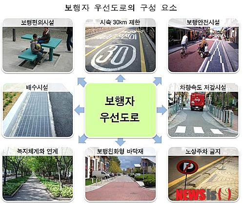 보행자우선도로는 보행자와 차량이 혼합해 이용하되 보행자의 안전과 편의를 우선적으로 고려하는 도로로, 차량속도 저감시설과 보행안전시설 등이 설치된다.