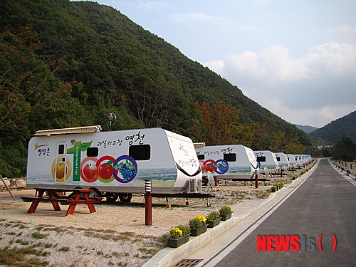 【영천=뉴시스】김재욱 기자 = 경북 영천시(시장 김영석)가 치산관광지에 조성한 이색적인 캐라반 캠핑장이 인기를 끌고 있다.
