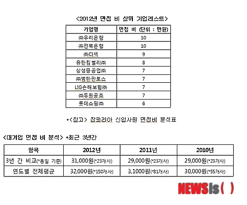 【서울=뉴시스】양길모 기자 = 국내 주요 대기업들의 면접비가 평균 3만2000원인 것으로 나타났다.